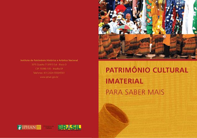 Há mais ou menos oito anos, a minha filha Winnie esteve em uma curta visita de caráter acadêmico na cidade histórica de Ouro Preto (MG), onde adquiriu um Manual do IPHAN (Instituto do Patrimônio Histórico e Artístico Nacional), intitulado: “Patrimônio Cultural Imaterial: para saber mais” (no site do instituto é possível acessar inúmeras publicações do seu acervo, clica aqui para conhecer).