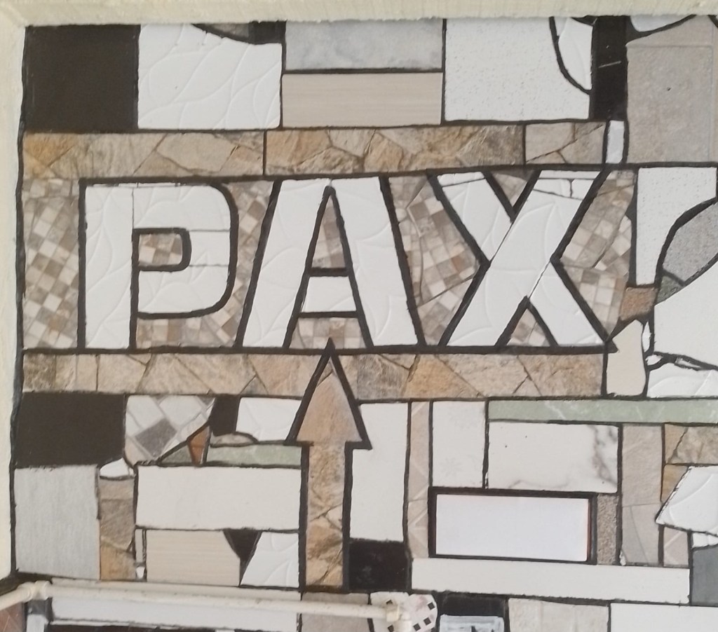 Obs. num mural/mosaico alguém fixou a palavra “PAX”, ou seja, PAZ. É a foto deste artigo.