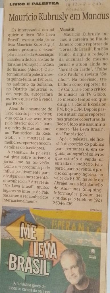 Vamos então, ao que me motivou a fazer este artigo em homenagem a esse notável repórter. Lembro bem que o meu pai havia comentado que Maurício viria a Manaus, em breve, para lançamento e palestra de seu livro. Ele veio sim. Isso ocorreu em 15 de dezembro de 2005, há exatos 19 anos.