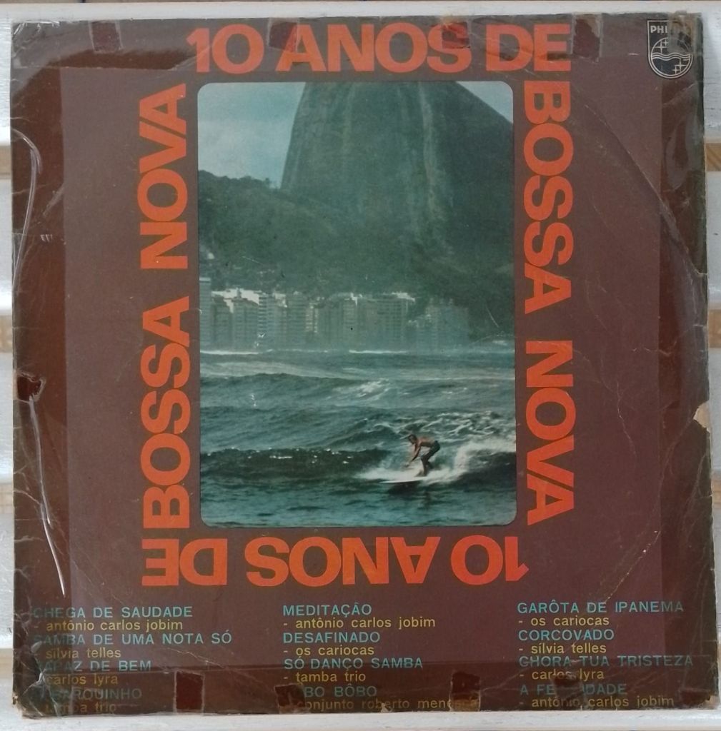“Garimpando” aqui e ali em sebos e lojas de discos, a nossa equipe conseguiu esse LP de 1970: “10 anos de bossa nova”, com “os doze maiores êxitos da BN e suas gravações originais, cuja seleção fora feita pelo jornalista, radialista e estudioso da MPB”, o carioca Júlio Hungria (1938-2015). Entre as 12 músicas estão: Chega de Saudade (Tom-Vinicius), Rapaz de Bem (Johnny Alf), O Barquinho (Roberto Menescal-Ronaldo Bôscoli), Garota de Ipanema (Tom-Vinicius), Chora Tua Tristeza (Oscar Castro Neves-Luvercy Fiorini), interpretadas por diferentes artistas.